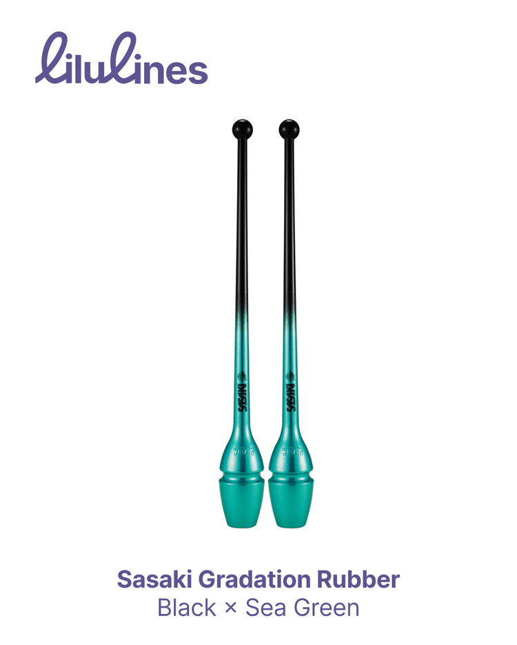 The Sasaki Gradation Rubber FIG Clubs are premium-quality rhythmic gymnastics clubs featuring a smooth two-tone gradient finish. The entire line is FIG approved, and both available sizes are officially certified by the Fédération Internationale de Gymnastique (FIG).