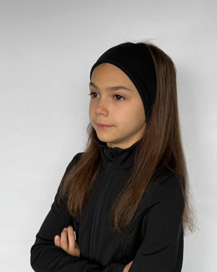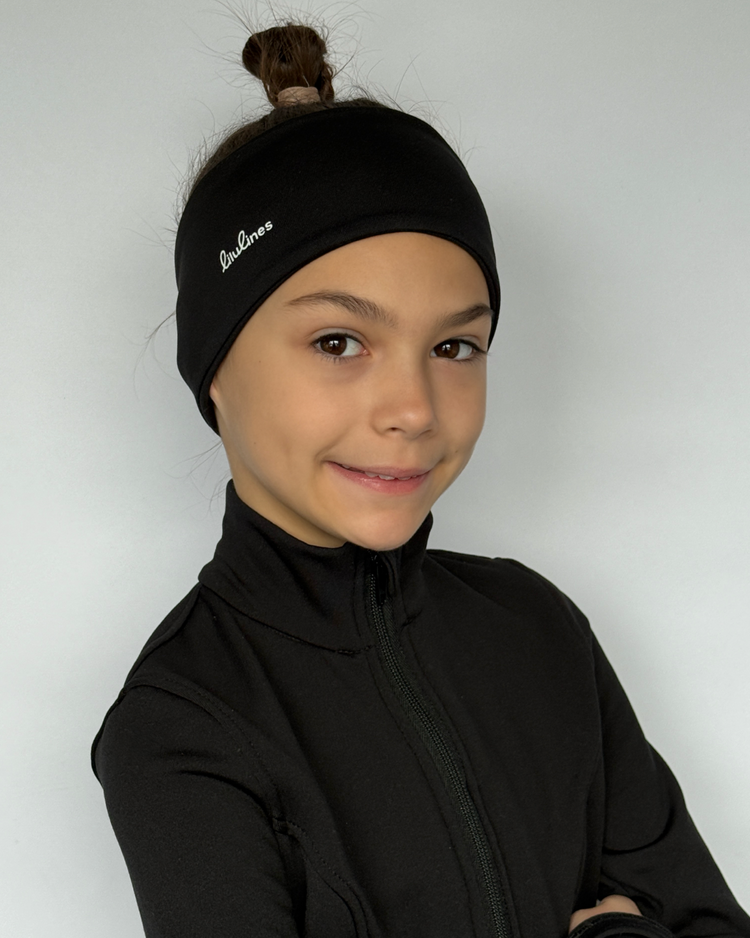 A soft and cozy headband created for active girls and gymnasts. The outer layer is made of elastic, pleasant-to-touch fabric, while the inside features warm, gentle fleece that provides comfort and protection from the cold.