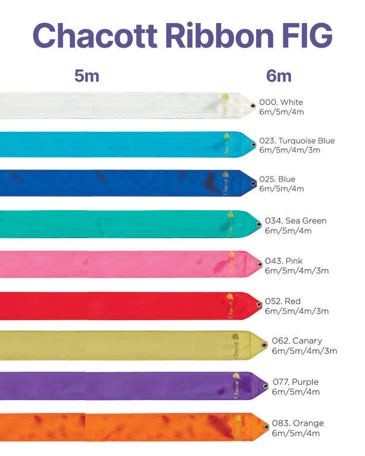Professional Chacott Ribbon, designed for gymnasts training at FIG level. It stands out for its lightness, elasticity and stable work in the air. High-quality rayon allows the ribbon to flow smoothly and cleanly through every movement.