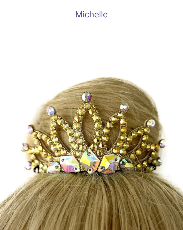 Корона для пучка — это сверкающий аксессуар, который завершает образ и заставляет каждую гимнастку почувствовать себя принцессой.
