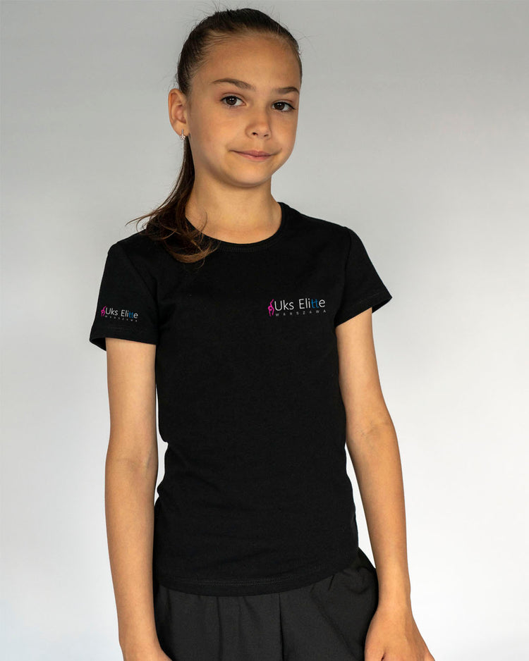 Футболка создана для гимнасток, которые ценят комфорт, стиль и практичность. Подходит для тренировок, разминок и выступлений. Классический чёрный цвет и минималистичный крой делают её универсальной.