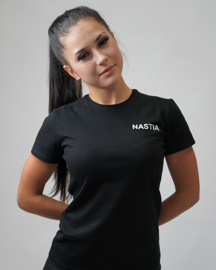 Футболка создана для гимнасток, которые ценят комфорт, стиль и практичность. Подходит для тренировок, разминок и выступлений. Классический чёрный цвет и минималистичный крой делают её универсальной.